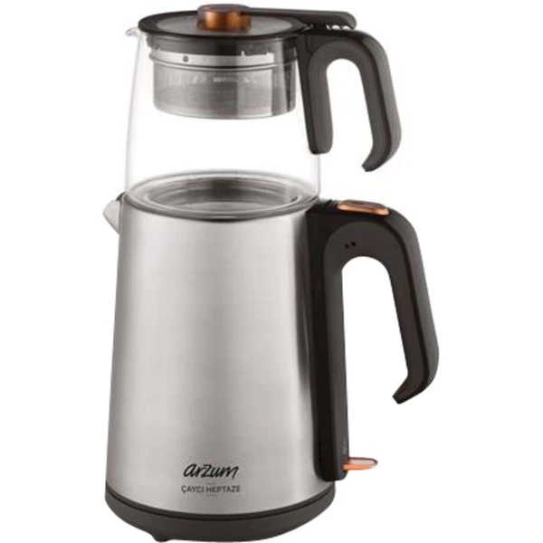 Mit dem elektrischen Teebereiter AR 3024 lässt sich ganz einfach Tee zubereiten. Das Doppelheizsystem bringt mit einer Leistung von 1650 Watt das Wasser zum Kochen und hält es mit 165 Watt warm. Der Inox-Kessel fasst 1,8 Liter und kann, mit seinem speziellen Deckel, auch nur als Wasserkocher verwendet werden. Die Glas-Teekanne hat ein Fassungsvermögen von 0,8 Litern. Das Teesieb ist beweglich und kann nach Ende der Ziehzeit nach oben gezogen und einfach am Griff befestig werden. Die Verwendung ist kabellos und das verdeckte Heizelement erleichtert die Reinigung.Art.-Nr.: 1431746