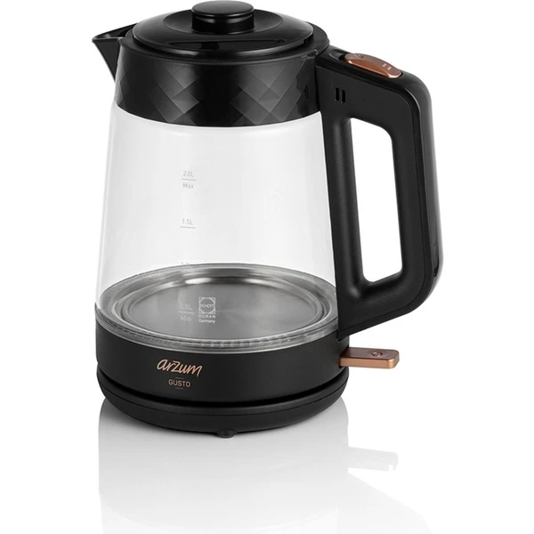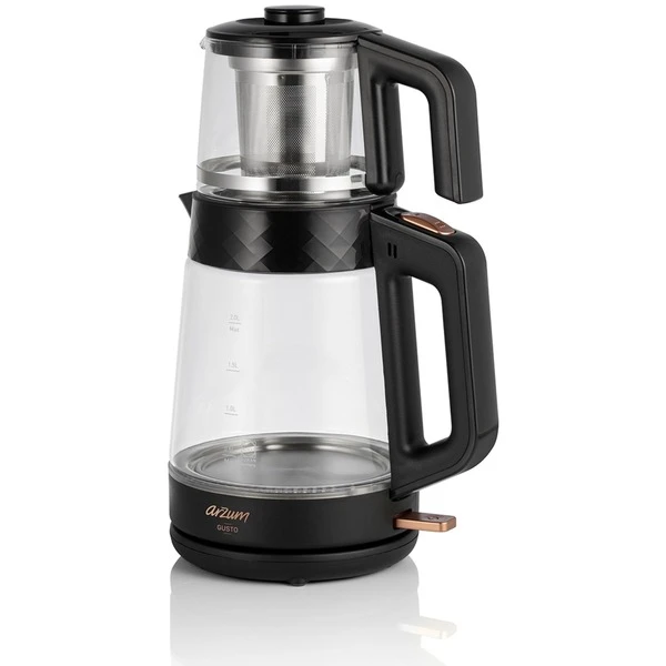 Mit dem elektrischen Teebereiter Gusto AR3101-CC lässt sich ganz einfach Tee zubereiten. Das Doppelheizsystem bringt mit einer Leistung von 1900 Watt das Wasser zum Kochen und verfügt über eine komfortable Warmhaltfunktion. Der Glas-Kessel fasst 2 Liter und kann auch nur als Wasserkocher verwendet werden. Die Glas-Teekanne hat ein Fassungsvermögen von 0,9 Litern. Das Teesieb ermöglicht die Verwendung von losem Tee. Art.-Nr.: 1795822