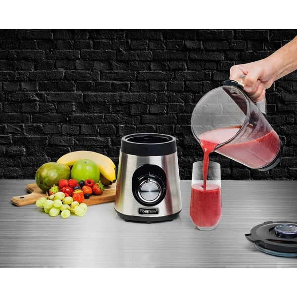 Der Standmixer ABL800STE aus der Steel Edition eignet sich ideal für die Zubereitung von Frucht- und Fitnessgetränken, Milchshakes, Cocktails, Suppen, Salsasaucen und Babynahrung. Auch das Zerkleinern von Eis ist dank der 500 Watt Leistung und dem robusten Glasmixer kein Problem. Der abnehmbare Mixbecher hat ein Fassungsvermögen von 1,5 Litern und ist spülmaschinengeeignet. Der Deckel verfügt über eine praktische Nachfüllöffnung und Sicherheits-Stopp-Funktion. Die Geschwindigkeit ist von 0 bis 2 einstellbar und hat auch eine Pulsfunktion. Das Gerät funktioniert nur, wenn der Mixbecher richtig positioniert ist und bietet durch die Gummifüße eine hervorragende Standfestigkeit.Art.-Nr.: 1740969