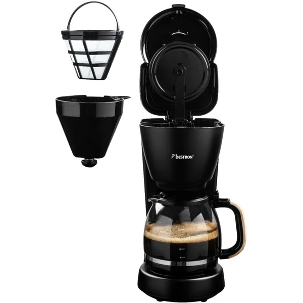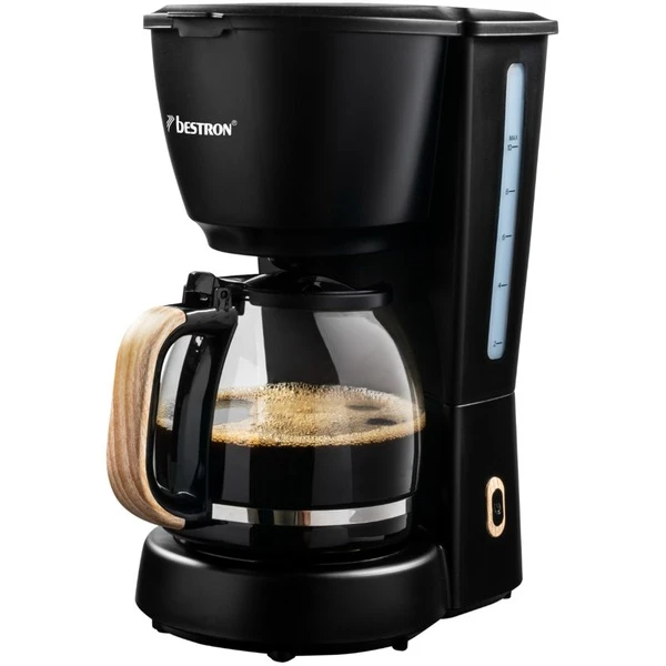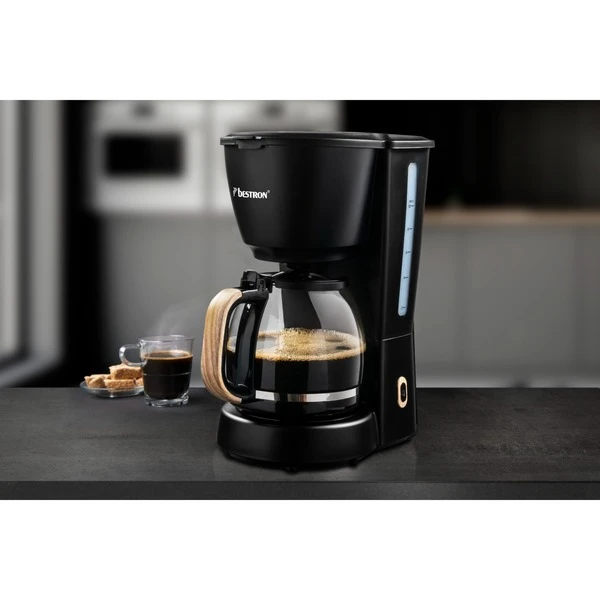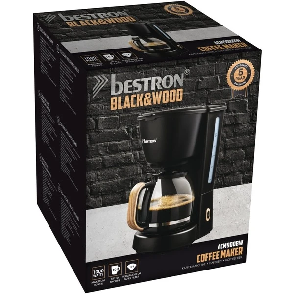 Die Bestron ACM900BW ist eine klassische Filterkaffeemaschine im stylischen Black&Wood-Design. Die Glaskanne fasst bis zu 10 Tassen bzw. 1,5 Liter Kaffee. Der entnehmbare Filterhalter mit mitgeliefertem Permanentfilter kann bei Bedarf auch mit Papierfiltern genutzt werden. Zu den weiteren praktischen Features gehören der Überhitzungsschutz, der Tropfverschluss, die Warmhalteplatte und die Wasserstandsanzeige mit Tassenskala. Und dank integrierter Abschaltautomatik schaltet sich die Bestron ACM900BW für mehr Sicherheit und einen geringeren Energieverbrauch von selbst ab.Art.-Nr.: 1820331