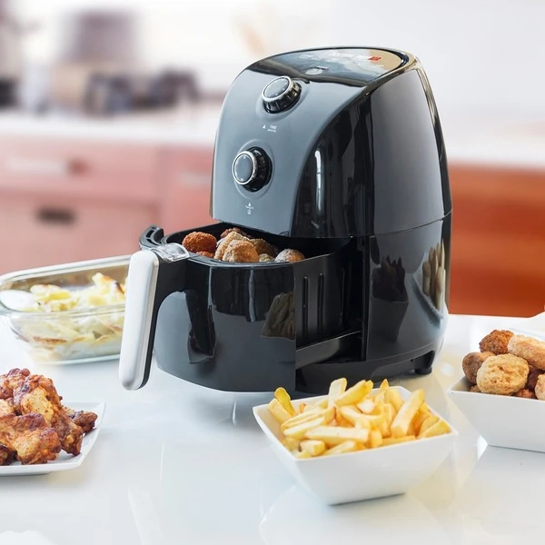 Mit der PrepAir Heißluftfritteuse AAF300 von Bestron kann man gesünder und sicherer Frittieren, Backen, Braten und Grillen, ohne Öl und ohne Fett. Durch die große Kapazität von ca. 1,5 Litern können zwei Portionen Pommes Frites oder Snacks gleichzeitig zubereitet werden. Die PrepAir eignet sich nicht nur für Pommes Frites und Snacks sowie Kartoffelprodukte sondern auch Fleisch, Fisch, Gemüse, Brot usw. Die einzigartige PrepAir-Technologie sorgt für gleichmäßiges Garen durch die schnelle Zirkulation der Luft. Die Bedienung ist intuitiv und komfortabel, man stellt einfach Temperatur und Zeit ein und es kann losgehen! Bis 200°C kann die Temperatur stufenlos eingestellt werden. Nach Ablauf des 30-Minuten-Timer ertönt ein Signal und das Gerät schaltet sich automatisch ab. Diese Art der Speisezubereitung ist nicht nur fettarm sondern es entstehen keine unangenehmen Gerüche. Die PrepAir AAF300 lässt sich nach dem Gebrauch sehr einfach reinigen, da Tablett und Frittierkorb antihaftbeschichtet und spülmaschinenfest sind. Für Sicherheit sorgen die Kontrollleuchten, der Überhitzungsschutz und die rutschfesten Füße. Art.-Nr.: 1494091