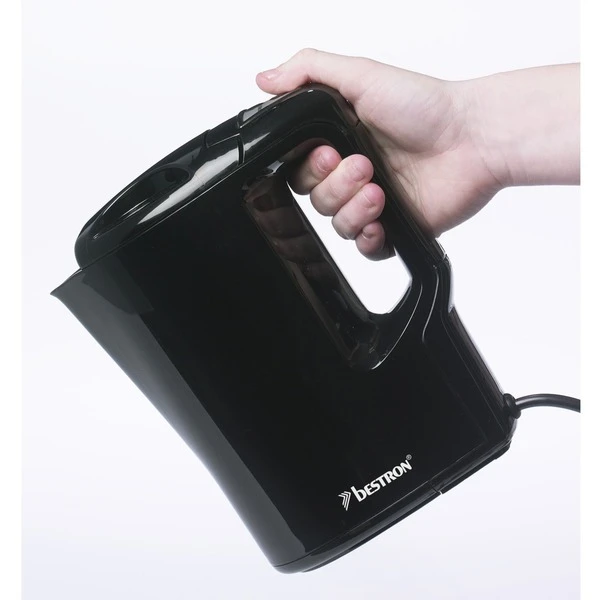 Der Wasserkocher AWK810 von Bestron überzeugt durch seine kompakte Bauweise und eignet sich so auch für Camping. Er fasst bis zu 0,9 Liter Wasser und bringt es mit einer Leistung von 500 Watt zum Kochen. Die Bedienung ist durch den Soft-Touch Ein-/Ausschalter mit Kontrollleuchte einfach. Dank integrierter Kochstoppautomatik, Trockengehschutz und Sicherheitsverschluss im Deckel ist der Wasserkocher AWK810 auch in Bezug auf Sicherheit eine gute Wahl. Art.-Nr.: 1435883