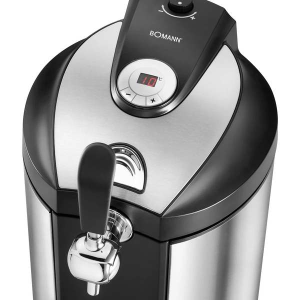 Die Bomann BZ 6029 CB ist eine Edelstahl-Bierzapfanlage mit CO²-Druckkartuschen-System und für alle handelsüblichen 5 Liter-Partyfässer geeignet. Sie stellt eine leistungsstarke und angenehme Alternative zum lästigen Tragen von Getränkekisten dar. Der Druck kann für das richtige Schaumniveau stufenlos eingestellt werden, für Biergenuss wie vom Wirt gezapft. Die BZ 6029 CB ist mit einem LED-Display zur komfortablen Temperaturregelung und Kühlung von 2 °C – 12 °C ausgestattet. Die Fässer lassen sich leicht installieren und so ist die Zapfanlage schon nach wenigen Mintuen einsatzbereit. Das Edelstahl-Abtropfgitter und die Tropfschale sind zur leichten Reinigung herausnehmbar und spülmaschinengeeignet.