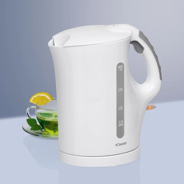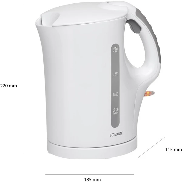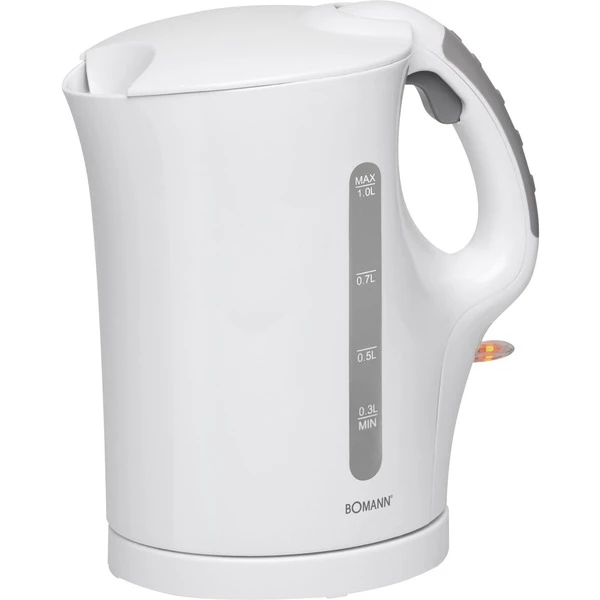 Mit einer Leistung von 900 W bringt der WK 5024 von Bomann das eingefüllte Wasser schnell und effizient zum Kochen, dabei liegt die maximale Füllmenge bei 1 Liter. Der Sicherheits-Klappdeckel kann mit einer Hand geöffnet und befüllt werden, dabei lässt sich die Füllmenge über die außenliegende Anzeige einsehen. Zur besseren Reinigung ist der Kalkfilter herausnehmbar. Für eine hohe Sicherheit sorgen der Trockengeh- und Überhitzungsschutz sowie ein rutschfester, gummierter Griff.Art.-Nr.: 1460491