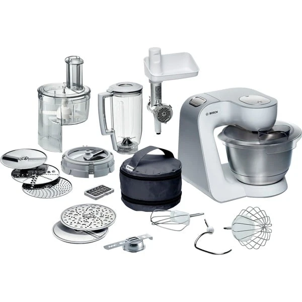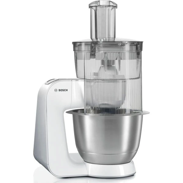 Die Küchenmaschine Bosch MUM54270 ist ein Universaltalent mit sieben Schaltstufen und einer zusätzlichen Momentstufe zum Zerkleinern und Hacken. Durch das vielfältige Zubehör, welches sich in der mitgelieferten Zubehörtasche verstauen lässt, macht Kochen und Backen wieder richtig Spaß. Dank des 3D-Rührsystems „Multi-motion-drive“ nimmt das Gerät einem alle Vorarbeiten ab, vom einfachen Mixen über Teigrühren, bis hin zum Zerkleinern. Die MUM 54270 besitzt eine Edelstahl-Rührschüssel für maximal 2 kg Teig sowie einen Mixer-Aufsatz mit einem Fassungsvermögen von 1,25 Liter. Somit besteht beim nächsten Rührkuchen die Herausforderung nur noch darin, das beste Rezept zu finden. In punkto Sicherheit glänzt die MUM 54270 mit einem Überlastungsschutz und rutschfesten Gummifüßen für einen sicheren Stand auf der Arbeitsfläche.Art.-Nr.: 1195116