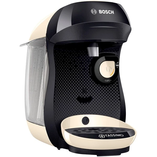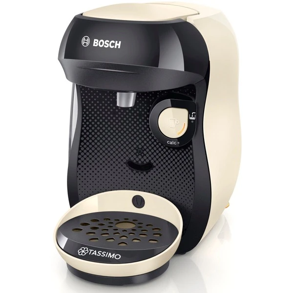 Das kompakte Bosch Multigetränkesystem Tassimo Happy TAS1007 besticht durch seine bunte Farbgebung. Über die vollautomatische Ein-Knopf-Bedienung lässt sich die Tassimo Happy einfach bedienen und das intuitive LED-Bedienfeld informiert über den jeweiligen Gerätezustand und zeigt an, wenn das Nachfüllen von Wasser, das Wechseln des Filters oder Entkalken notwendig ist. Mit der patentierten INTELLIBREW-Technologie – einer intelligenten Getränkeerkennung per Barcode – wird jedes Getränk mit der richtigen Wassermenge, Temperatur und Brühzeit perfekt zubereitet. Dank des Heizsystems ist die Tassimo Happy direkt nach Einschalten der Maschine einsatzbereit und durch die komfortable Selbstabschaltung nach jedem Brühvorgang sowie dem echten Ein-/Ausschalter hat sie zudem einen geringen Energieverbrauch.Art.-Nr.: 1497611