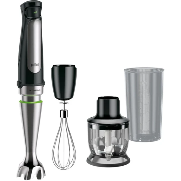 Der Braun MultiQuick 7 Stabmixer wurde entwickelt, um die Zubereitung von gesunden Gerichten für Familie und Freunde schneller und einfacher zu gestalten. Neben POWERBell PLUS und SPLASHControl Technologie verfügt der MQ 7025X über ACTIVEBlade Technologie. Dabei bewegt sich sie Messerklinge von oben nach unten und bietet mehr aktive Schneidefläche. Dank POWERBell Plus wird das Vorschneiden reduziert. Die extra Mahlklinge püriert auch ganze Lebensmittel. Außerdem nutzt der Stabmixer die Easy SmartSpeed Technologie, die für Geschwindigkeitskontrolle auf Knopfdruck sorgt. Je stärker der Tastendruck, desto höher die Leistung. Das EasyClick System Plus ermöglicht schnelleres Anbringen und Austauschen von Zubehör, dank größerer Knöpfe und einem intuitiven, geraden Design. Art.-Nr.: 1754106