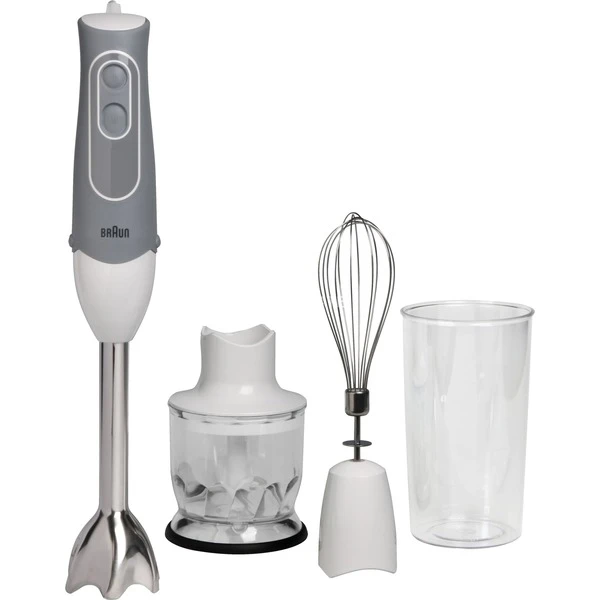 Der Stabmixer Braun MQ 525 Omelette ist dank eines 600-Watt-Motors ein leistungsstarker und effizienter Stabmixer. Der MQ 525 Omelette ist somit perfekt geeignet zum schnellen Mixen und Pürieren von Suppen, Saucen, leichten Teigen, Babynahrung, Milchshakes und vieles mehr. Der abnehmbare Edelstahl-Mixstab des MQ 525 Omelette ist spülmaschinengeeignet und der Mixbecher hat eine praktische Messskala. Beim MQ 525 Omelette sind im Set zudem enthalten: Schneebesen, Zerkleinerer und ein Mix-/ Messbecher.Art.-Nr.: 1100574