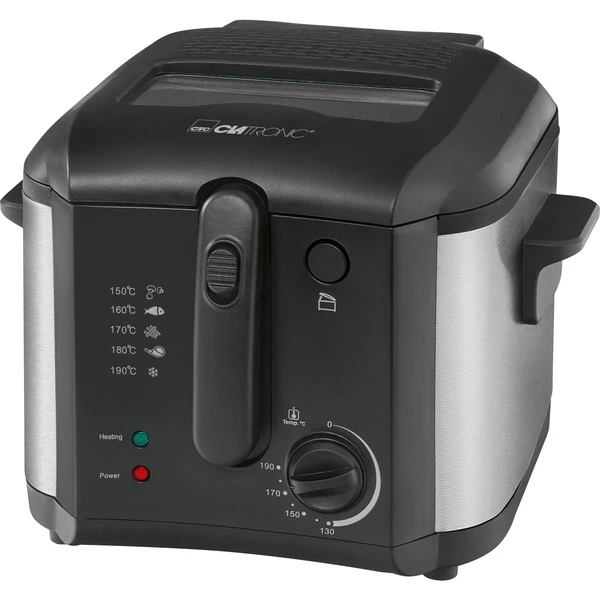 Die Fritteuse FR 3649 von Clatronic hat ein maximales Fassungsvermögen von 2,5 Litern. Der Ölbehälter ist zur leichteren Reinigung antihaftbeschichtet. Die Fritteuse verfügt über zwei Kontrolllämpchen, eines für die Stromzufuhr und eines für die Temperatur. Der Thermostat lässt sich im Bereich von 130 °C – 190 °C stufenlos Regulieren und zeigt mit seiner Kontrollleuchte an, wenn die eingestellte Temperatur erreicht ist. Im Deckel der Fritteuse FR 3649 befindet sich ein auswechselbarer Geruchs- und Fettdunstfilter sowie ein Sichtfenster.Art.-Nr.: 1460124