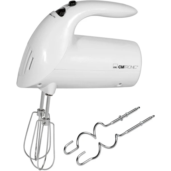 Der HM 3014 von Clatronic überzeugt durch einen kraftvollen Motor mit 250 Watt Leistung und fünf Geschwindigkeitsstufen. Die eingesetzten Edelstahl-Quirle können dank der Auswurftaste einfach und schnell entfernt werden. Neben den Quirlen sind auch zwei Knethaken enthalten. Diese können einfach in der Spülmaschine gereinigt werden.Art.-Nr.: 1654898
