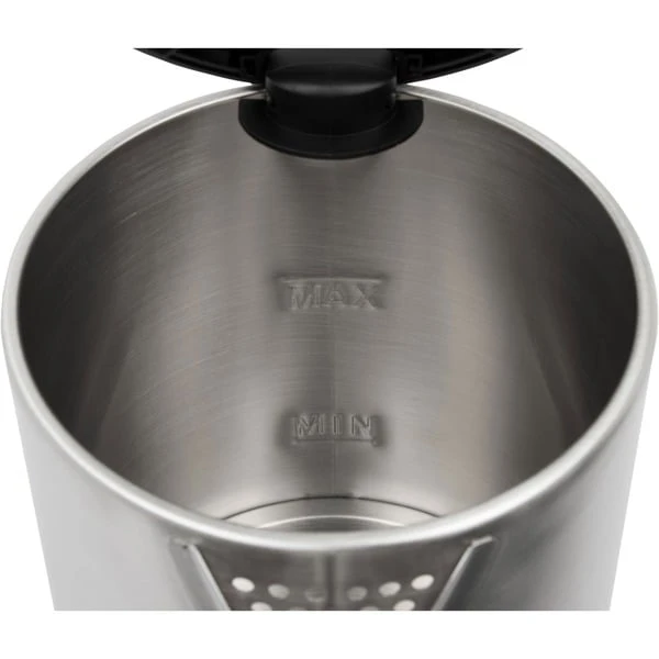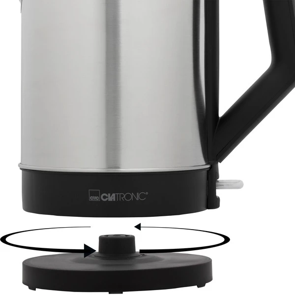 Der Wasserkocher WKS 3692 mit Edelstahlgehäuse von Clatronic überzeugt mit 1,5 l Füllmenge einer Leistung von 1000 Watt. Dank des Sicherheits-Klappdeckels kann der WKS 3692 mit einer Hand geöffnet und befüllt werden. Die Bedienung erfolgt über einen blau beleuchteten Ein-/Ausschalter. Zur besseren Reinigung ist das Edelstahl-Heizelement verdeckt. Für Sicherheit sorgen der Überhitzungsschutz und die Abschaltautomatik.