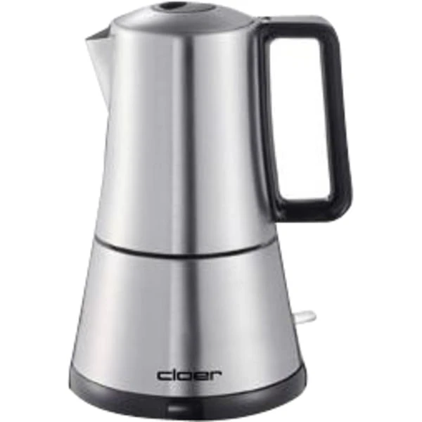 Der Cloer Espresso-Kocher 5928 ist aus hochwertigem Edelstahl gefertigt. Man kann mit ihm wahlweise drei oder sechs Tassen köstlichen, original italienischen Espresso zubereiten. Der Espresso-Kocher 5928 ist mit einer Koch-Stopp-Automatik ausgestattet, frei auf dem Sockel drehbar und kann direkt und praktisch am Tisch verwendet werden. Als Schutzfunktion ist sein Wasserbehälter mit einem Sicherheitsventil ausgestattet. Die Bedienung des Espresso-Kocher 5928 erfolgt über einen Ein-/Ausschalter, während eine Kontrollleuchte immer Auskunft über den aktuellen Betriebszustand gibt.Art.-Nr.: 954394
