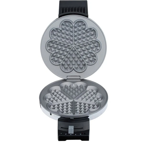 Das Waffeleisen Cloer 185 backt herzhafte und leckere 16cm breite Herzwaffeln. Der Bräunungsgrad kann mit einem Schieberegler an der Gerätevorderseite stufenlos eingestellt werden, eine optische und akustische Fertigmeldung gibt Auskunft darüber, wann die Waffeln fertig gebacken sind. Die Antihaftbeschichtung der 20cm großen Backfläche ermöglicht fettarmes Backen. Ein innenliegendes Scharnier und die Fettauffangrille vereinfachen die Reinigung des Gerätes.Art.-Nr.: 1104745