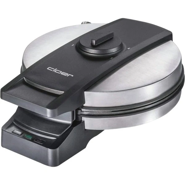 Der Waffelautomat 1898 Professional von Cloer im edlen Metallgehäuse mit leistungsstarken 950 Watt dient zum optimalen Backen von knusprig, lockeren Waffeln. Die Backfläche für die Waffel ist mit Ø 16,5cm extra groß. Durch die doppelte Antihaftbeschichtung ist der 1898 Professional besonders zuckerresistent, selbst bei kontinuierlichem Backen großer Mengen und eignet sich zum fettarmen Backen ohne zusätzliches Einfetten. Der Bräunungsgrad kann mit einem Drehregler am Gerät stufenlos eingestellt werden und eine optische und akustische Fertigmeldung gibt Auskunft darüber wann die Waffeln fertig gebacken sind. Das Scharnier des Waffelautomaten ist flexibel, damit die Waffeln richtig aufgehen können. Die Teigauffangrille und das innenliegende Scharnier sorgen für eine einfache Reinigung. Durch die robuste, 2,6 kg schwere Ausführung im hochwertigen Edelstahlgehäuse mit wärmeisolierten Griffen eignet sich der 1898 Professional für den gewerblichen Gebrauch. Das Gerät verfügt über einen professionellen, spritzwassergeschützten An-/Ausschalter, eine 1,2 Meter lange UV- und ölbeständige Zuleitung sowie eine patentierte Kabelaufwicklung die das Gerät verriegelt. So kann das Waffeleisen auch durch Aufstellen auf den Griff platzsparend verstaut werden.