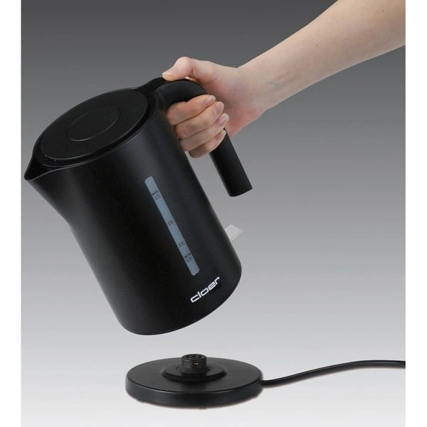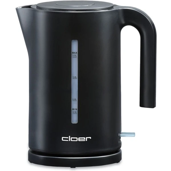 Der Wasserkocher Cloer 4110 kann bis zu 1,7 Liter Wasser aufnehmen und mit einer Leistung von bis zu 2.200 Watt in kürzester Zeit erhitzen. Das Gerät schaltet automatisch nach Beendigung des Kochvorgangs ab. Der verriegelte Sicherheitsdeckel öffnet bei Tastendruck. Praktisch ist zudem der Überhitzungs- und Trockengehschutz. Dank des 360-Grad-Anschluss-Sockel kann der Cloer 4111 in jeder Position aufgestellt und in Betrieb genommen werden.Art.-Nr.: 1127825