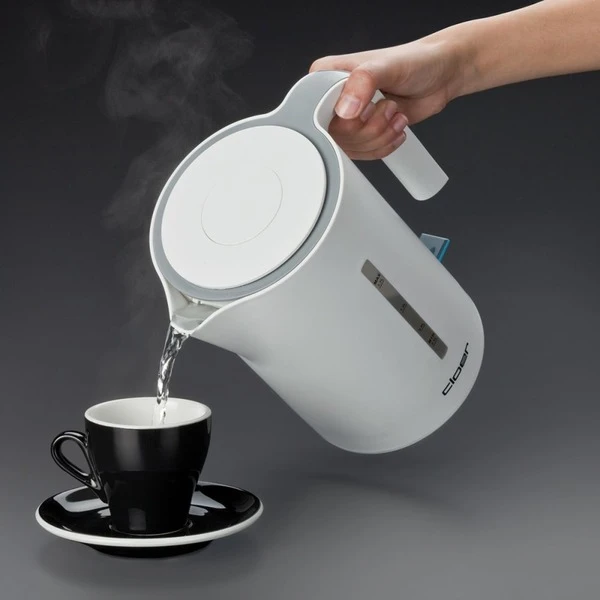 Der Wasserkocher Cloer 4111 kann bis zu 1,7 Liter Wasser aufnehmen und mit einer Leistung von bis zu 2.200 Watt in kürzester Zeit erhitzen. Das Gerät schaltet automatisch nach Beendigung des Kochvorgangs ab. Der verriegelte Sicherheitsdeckel öffnet bei Tastendruck. Praktisch ist zudem der Überhitzungs- und Trockengehschutz. Dank des 360-Grad-Anschluss-Sockel kann der Cloer 4111 in jeder Position aufgestellt und in Betrieb genommen werden.Art.-Nr.: 1127824