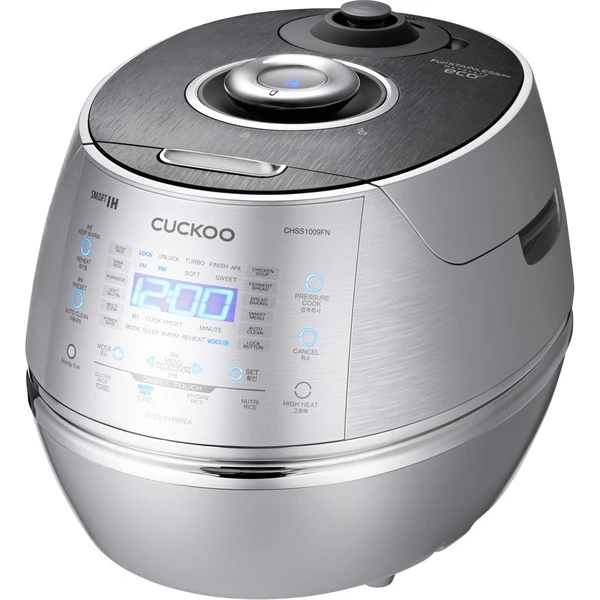 Der CRP-CHSS1009FN Dampfdruck Reiskocher von Cuckoo überzeugt mit seinen unzähligen Funktionen und Einstellungen. Er bietet eine Vielzahl von Möglichkeiten für das absolut perfekte Kochresultat. Die doppelte Dichtungsbeschichtung aus Gummi versiegelt den Topf komplett und verhindert das ungewollte Entweichen des Dampfes, was auch dem Geschmack sehr zuträglich ist. Der abnehmbare Hygienedeckel aus Edelstahl ist spülmaschinenfest und daher sehr einfach zu reinigen. Die Cuckoo Induktionserhitzung erzeugt eine gleichmäßige Temperatur von allen Seiten. Das Dampfkochen erhält nicht nur die Nährstoffe und den Geschmack des Essens, sondern verkürzt auch die Kochzeit immens. Mit dem CRP-CHSS1009FN lassen sich auch die Vorteile von braunem, gekeimtem Reis (Gaba Reis) mit nur einem Knopfdruck genießen. Dank der intelligenten DSP-Technologie von Cuckoo wird die Quellzeit reduziert, wodurch der Reis mehr Nährstoffe behält und einen hervorragenden Geschmack entwickelt. Der Cuckoo CRP-CHSS1009FN mit der dem IH (Induktion Heating) programmierbaren Dampfdruckprogramm und der S-Line-Path-Technologie (patentiertes Sicherheitsdampfventil) ist der perfekte Begleiter in jeder Küche. Mit dem CRP-CHSS1009FN kann aber nicht nur Reis zubereitet werden, man kann auch Joghurt zubereiten oder den eigenen Käse ansetzen. Die vorprogrammierten Funktionen bieten eine kaum vergleichbare Kochvielseitigkeit, ob Sushi-Reis, Suppen aller Art, Haferbrei oder Brot backen. Mit dem CRP-CHSS1009FN ist das kein Problem. Beste Materialien kombiniert mit neuster Technologie zeichnen den Reiskocher von Cuckoo aus und machen sie unverwechselbar!