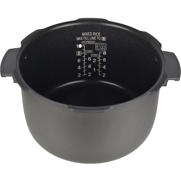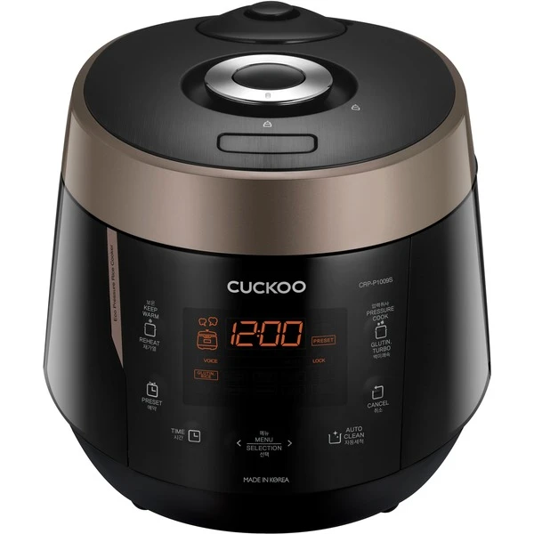 Der CRP-P1009S von Cuckoo ist ein Induktion-Dampfdruck Reiskocher und bietet mit seinen unzähligen Funktionen eine Vielzahl von Einstellungsmöglichkeiten für perfekte Kochresultate. Durch seine große Kapazität lassen sich bis zu 10 Portionen Reis zubereiten. Mit dem CRP-P1009S kann aber nicht nur Reis zubereitet werden, man kann auch Joghurt zubereiten oder den eigenen Käse ansetzen. 19 vorprogrammierte Funktionen bieten eine kaum vergleichbare Kochvielseitigkeit dabei sorgt die Cuckoo Induktionserhitzung für eine gleichmäßige Temperatur von allen Seiten. Ob Sushi-Reis, Suppen aller Art, Haferbrei oder Brot backen. Mit dem CRP-P1009S ist das kein Problem. Und für die Zubereitung der Edelreissorte Gaba bietet der CRP-P1009S ein eigenes Programm. Vom rohen Getreide über die Keimung bis auf den Punkt gekochten Reis. Für weiteren Komfort bietet der CRP-P1009S eine automatische Dampfreinigung. Per Knopfdruck wird der Reinigungsmechanismus in Form eines starken Dampfstrahls aktiviert, um das gesamte Innere des Reiskochers inklusive des Wasser-Drainage-Systems hygienisch zu reinigen. Ein weiteres Hight Light ist die Soft Steam Cap. Die „S-Line Path“-Technologie ist ein von Cuckoo patentiertes Dampfventilsystem, welches es ermöglicht, den Dampf während und zum Ende des Kochens leise und sicher entweichen zu lassen. Es reguliert sich vollautomatisch und sorgt für ein noch komfortableres Kocherlebnis.