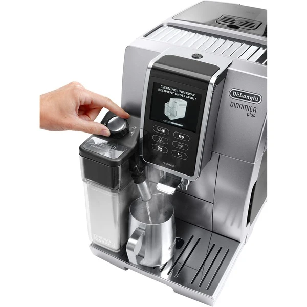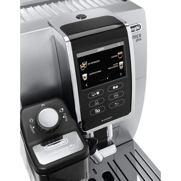 Vom erstklassigen Espresso bis zum meisterhaften Latte Macchiato: Die DeLonghi Dinamica Plus ECAM 370.95.S bereitet eine große Vielfalt an Kaffeespezialitäten zu. Mit nur einem Fingertipp genießt man schnell und einfach das gewünschte Kaffeegetränk, dank des intuitiven TFT-Touchscreens und Direktwahltasten für zahlreiche Getränke. Zusätzlich ermöglicht die „Coffee Link“ App für iOS und Android vielfältige Möglichkeiten der Personalisierung, Zugriff auf alle Einstellungen und unterstützt mit einem interaktiven Benutzerhandbuch und Pflegevideos. Das patentierte Milchaufschäumsystem mit integrierter Karaffe ermöglicht die Zubereitung von traditionellem Milchschaum oder heißer Milch für zusätzlichen Kaffeegenuss. Um höchste Hygiene zu ermöglichen, wurde bei der Karaffe eine Reinigungsfunktion integriert: Nach der Getränkezubereitung werden alle Bereiche, die mit Milch in Berührung kommen mit heißem Wasser und Dampf gereinigt. Außerdem können die Bestandteile der Milchkaraffe in die Spülmaschine gegeben werden.Art.-Nr.: 1492238