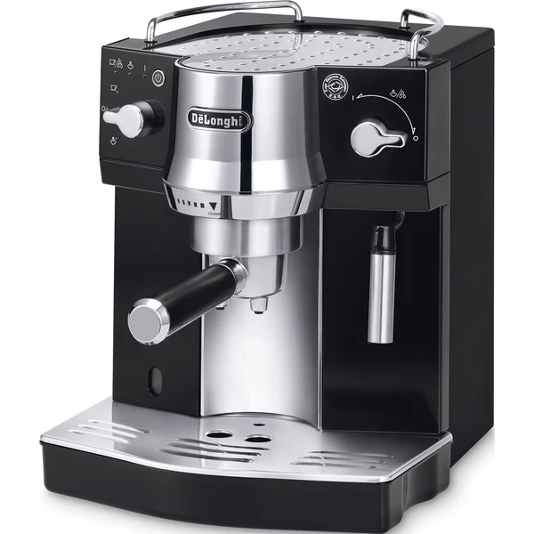 Die DeLonghi EC 820.B ist eine Espressomaschine für Kaffeepulver aber auch Easy Serving Espresso-Pads dank dem professionellen Kombi-Siebträger. Mit der Dampfdüse zum Milchaufschäumen kann mit der EC 820.B auch Cappuccino bereitet werden. Eine Heißwasserfunktion ermöglicht die schnelle Zubereitung von Tee. Praktisch ist der herausnehmbare Wassertank mit einer Kapazität von 1 Liter. Der konstante Druck von 15 Bar sorgt dabei für einen gleichmäßigen Brühvorgang. Die EC 820.B besitzt eine beheizte Tassenabstellfläche (passiv), damit der Kaffee immer mit der richtigen Temperatur getrunken werden kann sowie eine Standby- und Energiesparfunktion.Art.-Nr.: 890510