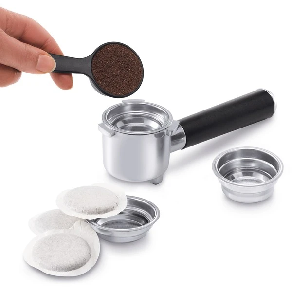 | Zubehör | vorhanden | 3 Filtereinsätze, Messlöffel mit Tamper | |