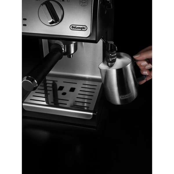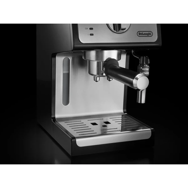 Die DeLonghi ECP 35.31 ist eine Espressomaschine für Kaffeepulver und Easy Serving Espresso (E.S.E.)-Pads. Einfach die Lieblings-Geschmacksrichtung oder das Lieblings-Pad wählen und einen ergiebigen, milden Espresso mit einer perfekten Crema zubereiten. Der professionelle Siebträgerhalter sorgt für eine konstante Kaffeetemperatur während der Zubereitung bis in die Tasse. Der Druck von 15 bar sorgt für einen Espresso mit vollem Aroma und einer nussfarbenen Crema oben drauf. Mit der Kombination aus professioneller Milchaufschäumdüse und herausnehmbarer Auffangvorrichtung können Cappuccino, Latte Macchiato und andere Milch-Kaffeespezialitäten auch zu Hause stilecht in hohen Gläsern zubereitet werden. Die zusätzlichen Filtereinsätze (für 1 oder 2 Tassen und E.S.E. Pads) und der Tamper können ordentlich im Gerät verstaut werden. Die Espressomaschine schaltet sich automatisch 9 Minuten nach der letzten Benutzung aus. Das spart Energie und schont die Umwelt.Art.-Nr.: 1628029