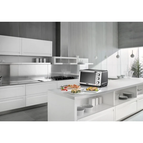 Der Delonghi Mini-Backofen EO2475 ist mit seinen sieben Funktionen ein praktischer Küchenhelfer. Zu den Funktionen wie Ober- und Unterhitze,