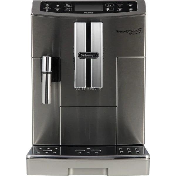 Die PrimaDonna S Evo ECAM 510.55 von DeLonghi ist ein Kaffeevollautomat mit einem hochwertigen Edelstahlgehäuse und dem patentierten DeLonghi LatteCrema System für besonders cremigen, feinporigen Milchschaum. Mit nur einem Knopfdruck bereitet man original italienischen Espresso, Coffee long, Doppio+, leckeren Cappuccino und Latte Macchiato sowie den italienischen Milchkaffee Caffé Latte oder auch heiße Milch zu. Die elegante PrimaDonna S Evo mit ergonomisch schräg gestelltem Sensor-Touch-Bedienfeld verfügt über eine Milchaufschäumdüse mit Vario-Drehregler, zur Einstellung der perfekten Milchschaumkonsistenz. Außerdem ist sie mit einer intuitiven LCD-Anzeige, einer aktiv beheizbaren Tassenabstellfläche, Tassenbeleuchtung sowie einem integrierten Wasserfilter ausgestattet.Art.-Nr.: 1371697