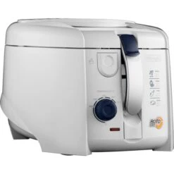 Die DeLonghi Roto-Fry F 28211 kann bis zu 1 kg Frittiergut aufnehmen und überzeugt mit einer Leistung von 1800 Watt. Das patentierte System basiert auf einem schräg eingehängten, rotierenden Frittierkorb. Dadurch wird nur die Hälfte des Öls benötigt. Das Frittiergut wird an der Luft immer wieder kurz abgeschreckt und das Ergebnis wird besonders knusprig und lecker. Über einen regelbaren Thermostat kann die gewünschte Temperatur zwischen 150° und 190° Celsius eingestellt werden. Das Panorama Sichtfenster erlaubt die Kontrolle des Frittiervorgangs bei geschlossenem Deckel. Dieser kann per Knopfdruck geöffnet werden und ist für eine leichte Reinigung abnehmbar und spülmaschinengeeignet. Praktisch bei der Roto-Fry F 28211 ist der auswechselbare Geruchsfilter.