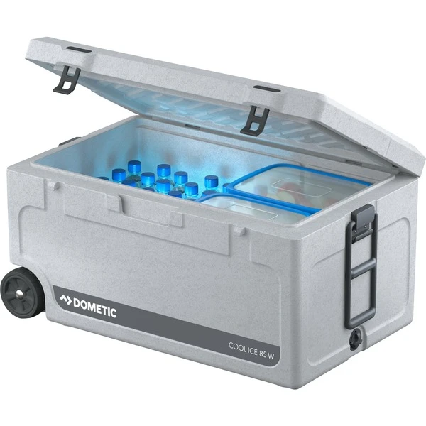 Die passive Kühlbox Dometic Cool-Ice CI 85W bietet einen Nutzinhalt von 86 Litern und ist ideal in allen Fällen, in denen man ohne Stromquelle auskommen muss. Die dicke Schaumstoffisolierung und die Ausführung mit Labyrinthdichtung tragen dazu bei, dass das Eis länger gefroren bleibt – je nach Nutzung und Witterungsbedingungen sogar mehrere Tage. Die Cool-Ice CI 85W ist ideal für den Einsatz bei andauernder Witterungseinwirkung geeignet, insbesondere auf Booten, und mit Hilfe von Coolpacks oder Eiswürfeln bleiben Lebensmittel, Fische, Köderfische und Wildbret frisch. Die Cool-Ice CI 85W besitzt ergonomische Griffe aus robustem Polyethylen, die auch zur Befestigung der Kühlbox verwendet werden können.Art.-Nr.: 1489581