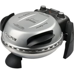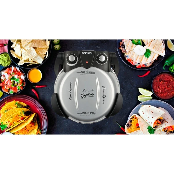 Mit dem elektrischen Pizzamaker Delizia von G3 Ferrari gelingen Pizzen zu Hause so einzigartig und knusprig wie aus dem Steinbackofen beim Italiener. Der G3 Ferrari Pizzaofen erreicht Temperaturen von bis zu 400 Grad, für perfekte Backergebnisse. Er eignet sich auch zum schnellen Aufwärmen und Aufbacken von frisch duftendem Brot, Croissants und Baguette. Blitzschnell in nur ca. 5 Minuten ist selbstgemachte Pizza servierbereit, Tiefkühlpizza in ca. 3 Minuten. Durch das Backen mit dem feuerfesten, lebensmittelechten Naturstein wird die Feuchtigkeit des Teiges absorbiert und die Hitze im Stein gespeichert und gleichmäßig an den Teig abgegeben. Das Ergebnis ist ein besonders gleichmäßig knuspriger Boden, lecker und kross. Der Pizzaofen Delizia bietet vielfältige Möglichkeiten, morgens, mittags und abends: Leckere warme Brötchen oder Toast am Morgen, frische Burritos oder Wraps zu Mittag, krosse neapolitanische Pizza, Fladen, Lahmacun oder Flammkuchen zum Feierabend. Dabei ist der Pizzaofen praktisch, einfach in der Bedienung und so kompakt, dass er einfach mitgenommen werden kann, zum Geburtstag, Filmevent, Fußballspiel, Mädelsabend, Camping, nettes Zusammensein oder als Geschenkidee. Durch das ansprechende Design und die vielen erhältlichen Farben ist der Pizzaofen ein Blickfang für jede Küche.Art.-Nr.: 1720159