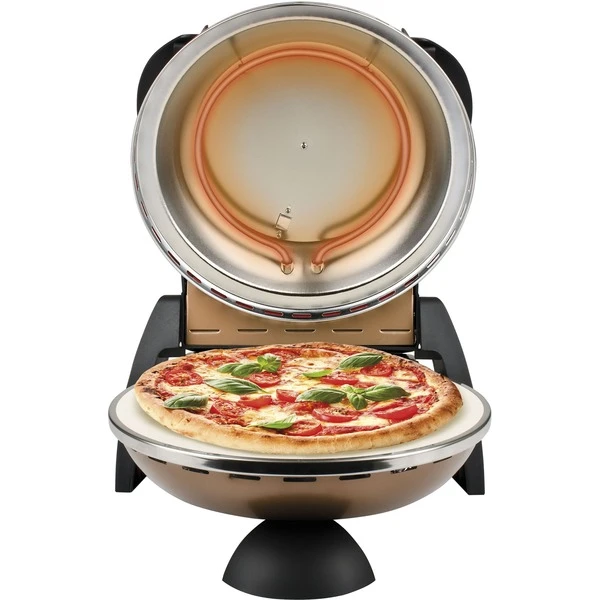 Mit dem elektrischen Pizzamaker Delizia von G3 Ferrari gelingen Pizzen zu Hause so einzigartig und knusprig wie aus dem Steinbackofen beim Italiener. Der G3 Ferrari Pizzaofen erreicht Temperaturen von bis zu 400 Grad, für perfekte Backergebnisse. Er eignet sich auch zum schnellen Aufwärmen und Aufbacken von frisch duftendem Brot, Croissants und Baguette. Blitzschnell in nur ca. 5 Minuten ist selbstgemachte Pizza servierbereit, Tiefkühlpizza in ca. 3 Minuten. Durch das Backen mit dem feuerfesten, lebensmittelechten Naturstein wird die Feuchtigkeit des Teiges absorbiert und die Hitze im Stein gespeichert und gleichmäßig an den Teig abgegeben. Das Ergebnis ist ein besonders gleichmäßig knuspriger Boden, lecker und kross. Der Pizzaofen Delizia bietet vielfältige Möglichkeiten, morgens, mittags und abends: Leckere warme Brötchen oder Toast am Morgen, frische Burritos oder Wraps zu Mittag, krosse neapolitanische Pizza, Fladen, Lahmacun oder Flammkuchen zum Feierabend. Dabei ist der Pizzaofen praktisch, einfach in der Bedienung und so kompakt, dass er einfach mitgenommen werden kann, zum Geburtstag, Filmevent, Fußballspiel, Mädelsabend, Camping, nettes Zusammensein oder als Geschenkidee. Durch das ansprechende Design und die vielen erhältlichen Farben ist der Pizzaofen ein Blickfang für jede Küche.Art.-Nr.: 1663448