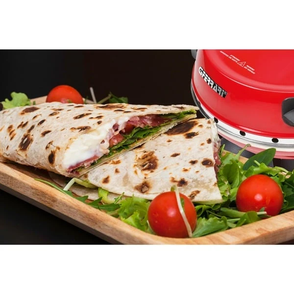 Mit dem elektrischen Pizzamaker Napoletana von G3 Ferrari gelingen Pizzen zu Hause so einzigartig und knusprig wie aus dem Steinbackofen beim Italiener. Der G3 Ferrari Pizzamaker erreicht Temperaturen von bis zu 400 Grad, für perfekte Backergebnisse so arbeiten Profis. Er eignet sich auch zum schnellen Aufwärmen und Aufbacken von frisch duftendem Brot, Croissants und Baguette. Blitzschnell in nur ca. 5 Minuten ist selbstgemachte Pizza servierbereit, Tiefkühlpizza auch in ca. 3 Minuten. Das regelbare Thermostat bietet Temperaturen von bis zu 400°C, sodass die Soße nicht austrocknet und ein Ergebnis erzielt wird, wie bei den traditionellen italienischen Pizzen. Dank des Systems mit zwei feuerfesten Steinen (Durchmesser 31cm) können mit dem Napoletana außerdem auch Sandwiches, Focaccia, Tigelle und ähnliche Speisen zubereitet werden. Die Hitze wird im Stein gespeichert und gleichmäßig an den Teig abgegeben, das Ergebnis ist ein besonders gleichmäßig knuspriger Boden, lecker und kross. Dabei ist der Pizzamaker praktisch, einfach in der Bedienung und kompakt, so kann er einfach mitgenommen werden, egal, ob zum Geburtstag, Filmevent, Fußballspiel, Mädelsabend, Camping, nettes Zusammensein oder als Geschenkeventidee. Durch das ansprechende Design ist der Pizzaofen ist ein Blickfang für jede Küche.Art.-Nr.: 1269679