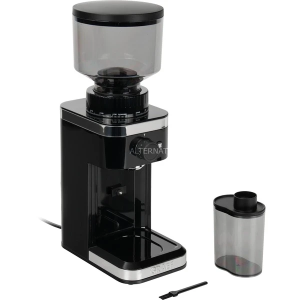 Die Kaffeemühlen der CM 500-Serie von Graef bieten durch ihre professionellen Funktionen für die Espressozubereitung, aber auch viele weitere Zubereitungsarten wie Filterkaffee oder French Press, die optimalen Voraussetzungen für das frische Mahlen der Lieblings-Kaffeebohne. Für das volle Aroma wird die Kaffeebohne unmittelbar vor dem Aufbrühen gemahlen. Die Kaffeemühle besticht durch das typisch gradlinige Graef-Design. Egal, ob feines Kaffeepulver für die Espressomaschine oder grob gemahlen für eine French-Press-Kanne: Die kompakte Mühle eignet sich für jede Art der Kaffeezubereitung. Die Graef Kaffeemühlen der CM 500-Serie setzen auf ein aromaschonendes Kegelmahlwerk aus Edelstahl. Bis zu 140 verschiedene Mahlgrade lassen sich einstellen. So gelingt vor allem bei der Zubereitung in der Espressomaschine eine exakte Mahlgrad-Anpassung. Dank der automatischen Mahlfunktion für Siebträger lässt sich die Kaffeemehlmenge auf die individuellen Bedürfnisse abstimmen: Solange man den Siebträger gegen den Kontaktschalter drückt, wird das Kaffeemehl frisch in den Siebträger gemahlen. Für andere Zubereitungsarten dosiert die Kaffeemühle das Kaffeemehl tassengenau und sauber in den Kaffeemehlbehälter oder direkt in den Kaffeefilter. Der Mahlvorgang startet nach Auswahl der gewünschten Mahlmenge (1 bis 12 Tassen) auf Knopfdruck. Die Graef Kaffeemühle CM 502 ermöglicht direktes, automatisches Mahlen in den Kaffeefilter der Kaffeemaschine mit Tassenvorwahl. Der Kaffeefilter kann dabei einfach unter dem Kaffeemehlauslauf positioniert werden. Unter dem Kaffeemehlauslauf befindet sich am Gehäuseboden ein praktisches Aufbewahrungsfach für die beiden Siebträgerhalter und die Reinigungsbürste. So kann das Zubehör direkt im Gerät verstaut werden.Art.-Nr.: 1825492