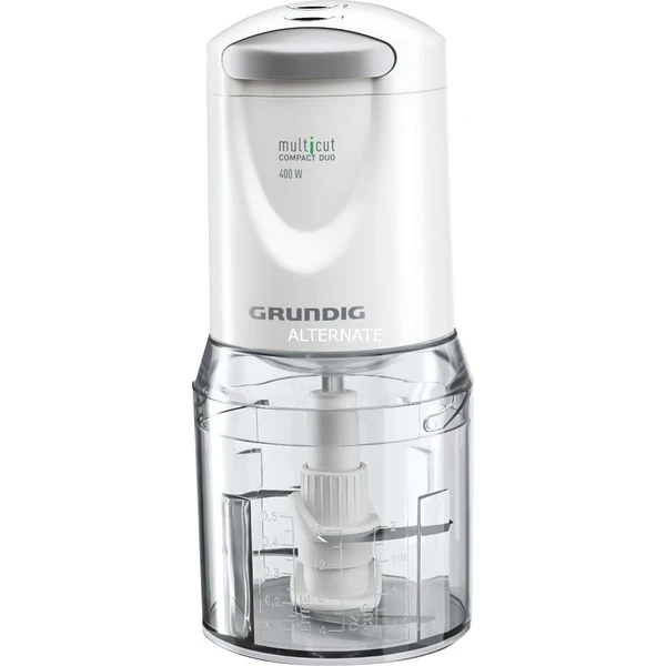 Der Zerkleinerer Grundig MM 5150 hat einen 500 ml großen Behälter und überzeugt mit einfacher Bedienung. Durch den transparenten Behälter kann man das Zubereiten problemlos beobachten. Ein leistungsstarker Motor mit 400 Watt Leistung sowie vier robuste Edelstahlmesser stehen für jegliche Art von Mix-Zutaten zur Verfügung.Art.-Nr.: 1085026