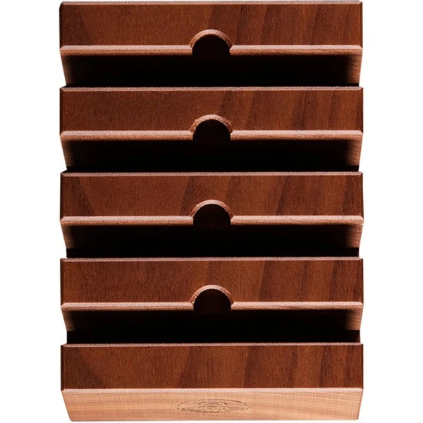 Die Schleifscheiben Station von HORL ist eine Aufbewahrungsstation für max. vier HORL Rollschleifer-Schleifscheiben. Sie wird aus einem massiven Block Nussbaum im Schwarzwald gefertigt. Die feinen Fasen veredeln die exklusive Optik. So sind die benötigten Schleifscheiben immer griffbereit und ein Blickfang in jeder Küche.Art.-Nr.: 1621760
