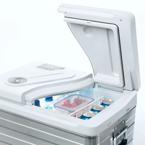 Die thermoelektrische Kühlbox Mobicool MQ40A bietet ein Fassungsvermögen von 39 Litern und bietet Platz für bis zu 53 Dosen oder 6 1,5-Liter-Flaschen (eine davon aufrecht stehend). Sie kann dank des zweifachen Spannungssystems (12/230 V) auf Reisen im Auto und auch zu Hause verwendet werden. Dank großzügiger Isolierung, doppeltem Lüftersystem und geteiltem Deckel erreicht sie schnell und effizient Temperaturen von bis zu 20 °C unter Umgebungstemperatur. Das Aluminiumgehäuse ist nicht nur elegant, sondern auch äußerst robust, und die einklappbaren Seitengriffe sind platzsparend und sorgen für müheloses Tragen. Im Deckel der MQ40A befindet sich zudem ein praktisches Fach zur Aufbewahrung der Anschlusskabel.Art.-Nr.: 1706260