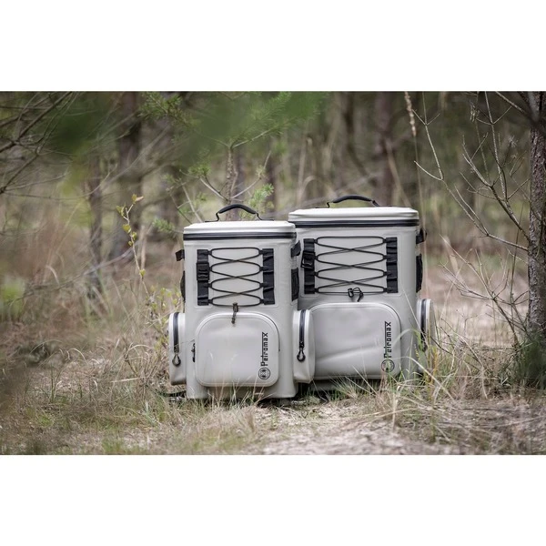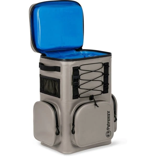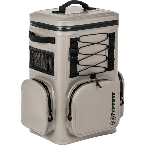 Der Petromax Kühlrucksack 17 Liter hält Speisen und Getränke unterwegs bis zu sechs Tage lang frisch – dank stromunabhängiger Kühlung mit Eiswürfeln. Er bietet Platz für sechs stehende 1-Liter-Getränkeflaschen oder ein Sixpack Bier plus Grillgut. Die komfortable Rückenpolsterung, der Brustgurt und die individuell verstellbaren Schultergurte sorgen für einen angenehmen Tragekomfort. Dank des Tragegriffs und der beiden Griffe an den Seiten lässt sich der Kühlrucksack bequem abstellen, um ein eisgekühltes Getränk zu entnehmen. Das wasserabweisende Nylongewebe, der wasserdichter Reißverschluss und die schmutzabweisende Oberflächen sorgen für eine lange Haltbarkeit. Der Kühlrucksack 17 Liter verfügt über eine große, wasserdichte Fronttasche, zwei große, wasserdichte Seitentaschen sowie zwei praktische Netztaschen. An den Laschen lässt sich kleineres Zubehör transportieren, größeres an Karabinerhaken. Weitere Gegenstände können mithilfe der Spanngummis befestigt werden und das wohlverdiente kühle Bier öffnet man nach dem Transport einfach mit dem integrierten Flaschenöffner.Art.-Nr.: 1919458