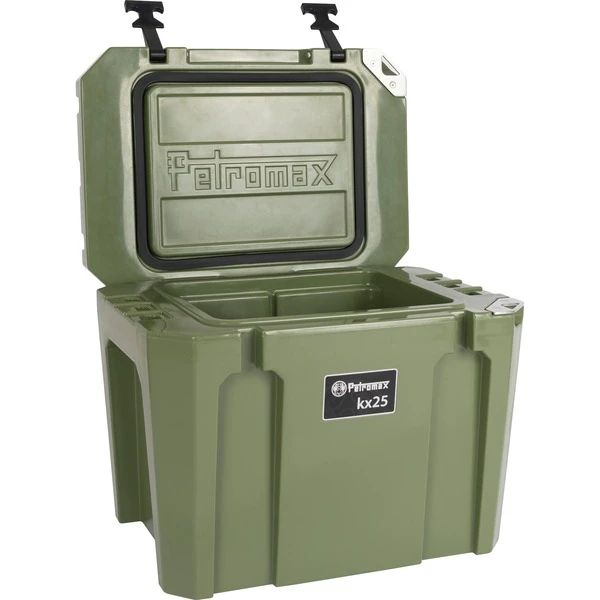 Mit dem stromlosen Kühlsystem zurück zum unabhängigen Naturerlebnis: Die Kühlbox kx25 von Petromax ist ein Ultra-Passivkühlsystem, das eine völlig autarke Versorgung bietet. Allein die Isolierschicht von mindestens 45 mm Dicke ermöglicht, dass der doppelwandige, robuste Polyethylen-Korpus der kx25 Eis bis zu 12 Tage lang gekühlt hält. Mit handelsüblichem Eis, Kühlakkus oder Trockeneis befüllt erzielt die Kühlbox eine andauernd niedrige Temperatur im Inneren, sodass eine lange Kühldauer von Lebensmitteln erreicht wird – genau dann, wenn es draußen darauf ankommt. Die kx25 bietet mit 25 Litern Füllvolumen ausreichend Platz für kalte Getränke und Speisen, wobei der Innenraum so konstruiert ist, dass 1-Liter-PET-Flaschen aufrecht und platzsparend transportiert werden können. Durch die voll integrierten Tragegriffe ist ein Transport auch im befüllten Zustand bequem möglich. Zusätzlich lässt das integrierte Ablaufsystem der kx25 ein problemloses Ablassen von Schmelzwasser zu, sodass während des Betriebes einfach Eis nachgefüllt oder im Anschluss der Innenraum gereinigt werden kann.Art.-Nr.: 1652462