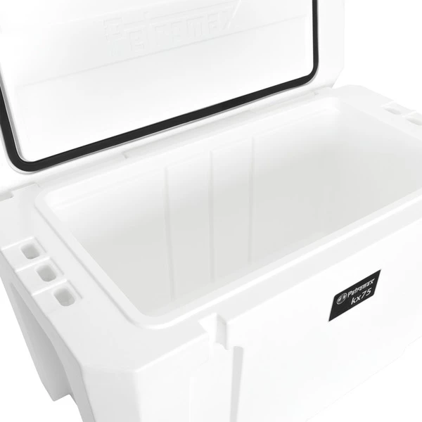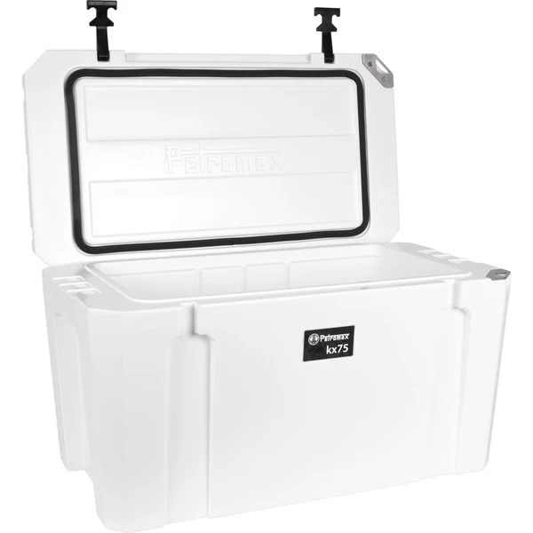 Mit dem stromlosen Kühlsystem zurück zum unabhängigen Naturerlebnis: Die Kühlbox kx75 von Petromax ist ein Ultra-Passivkühlsystem, das eine völlig autarke Versorgung bietet. Allein die Isolierschicht von mindestens 45 mm Dicke ermöglicht, dass der doppelwandige, robuste Polyethylen-Korpus der kx75 Eis bis zu 12 Tage lang gekühlt hält. Mit handelsüblichem Eis, Kühlakkus oder Trockeneis befüllt erzielt die Kühlbox eine andauernd niedrige Temperatur im Inneren, sodass eine lange Kühldauer von Lebensmitteln erreicht wird – genau dann, wenn es draußen darauf ankommt. Die kx75 bietet mit 75 Litern Füllvolumen ausreichend Platz für kalte Getränke und Speisen, wobei der Innenraum so konstruiert ist, dass 1,5-Liter-PET-Flaschen aufrecht und platzsparend transportiert werden können. Durch die voll integrierten Tragegriffe ist ein Transport auch im befüllten Zustand bequem möglich. Zusätzlich lässt das integrierte Ablaufsystem der kx75 ein problemloses Ablassen von Schmelzwasser zu, sodass während des Betriebes einfach Eis nachgefüllt oder im Anschluss der Innenraum gereinigt werden kann.Art.-Nr.: 1668058