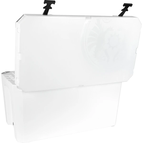| Feature | Deckel mit rutschfester Oberfläche als Sitz- und erhöhte Standfläche, Deckelführungen für Zurrgurte bei geschlossenem Transport, verstärkte Verschlussplatten für zusätzliche Sicherung mit Bügelschloss, rutschfeste Gummiverschlüsse (einhändig bedienbar), ergonomische Tragegriffe und zusätzliche Verzurrpunkte zum sicheren Öffnen / Schließen während des Transports, rutschfeste Gummifüße für festen Stand und Luftzirkulation an der Unterseite | ||