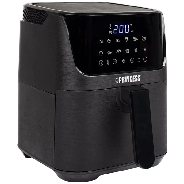 Mit der Digitalen Heißluftfritteuse XL 182024 von Princess lassen sich gesunde Mahlzeiten für die ganze Familie frittieren, backen, grillen, kochen und braten. Das Volumen von 3,5 Litern ermöglicht es, bis zu 5 Portionen knusprige und leckere Pommes frites auf einmal zuzubereiten. Dank des digitalen Bildschirms und den 10 vorprogrammierten Leistungsstufen ist die Zubereitung von Speisen in der Heißluftfritteuse einfach und macht Spaß. Ihr luxuriöses, schwarz gebürstetes Gehäuse macht sie zu einem echten Schmuckstück in jeder Küche. Dank der einzigartigen Kombination aus heißer Umluft und der leicht einstellbaren Temperatur, ist das Kochen mit der Digitalen Heißluftfritteuse XL von Princess gesund und fettarm. Aufgrund der Hochgeschwindigkeits-Luftkonventionstechnologie wird nur wenig oder gar kein Fett für ein perfektes und knuspriges Ergebnis benötigt. Die Princess Heißluftfritteuse verfügt über zehn vorprogrammierte Leistungsstufen, mit denen man per Knopfdruck die richtige Zubereitung für Pommes frites, Fleisch, Fisch, Garnelen, Huhn, Steak und Kuchen auswählen und starten kann. Wenn man lieber eine eigene Gartemperatur und Garzeit einstellen möchte, kann man das einfach über das digitale Bedienfeld mit integriertem Timer machen. Auf diese Weise lassen sich beispielsweise Frikadellen, Brötchen und Quiches zubereiten. Durch den abnehmbaren Korb mit Cool-Touch-Griff ist das Servieren der Speisen einfach und sicher. Der Korb und die antihaftbeschichtete Schale sind spülmaschinenfest, sodass die Reinigung der Heißluftfritteuse ein Kinderspiel ist. Mit ihren rutschfesten Füßen steht die Heißluftfritteuse stabil auf nahezu jeder Oberfläche, sodass sie nicht kippen oder verrutschen kann. Zu den weiteren Sicherheitsmaßnahmen zählt der Überhitzungsschutz, der dafür sorgt, dass die Heißluftfritteuse nicht zu heiß wird. So wird die Princess Heißluftfritteuse zu dem neuen Lieblingsküchengerät für köstliches und gesundes Essen.Art.-Nr.: 1860414