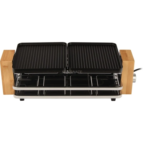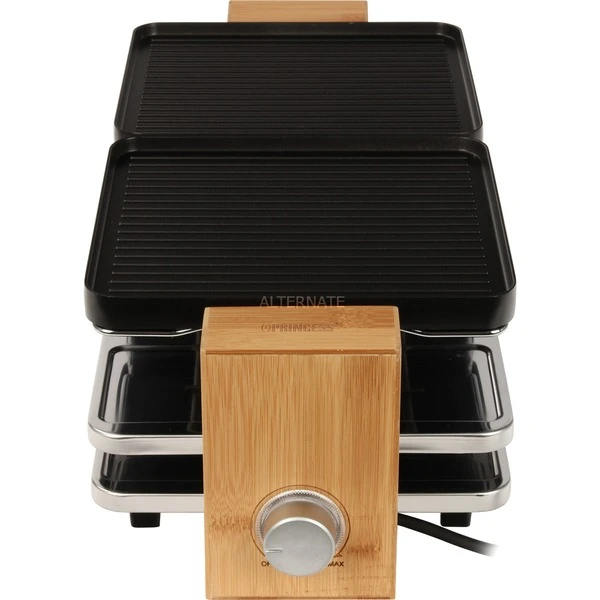 | Weitere Informationen | Der Princess Raclette Pure 8 ist eines der ansprechenden Produkte aus der Princess Pure-Serie. Bei allen Geräten dieser Produktreihe kommt Bambus als Veredelungsmaterial zum Einsatz. Dieses langlebige und unempfindliche Material sieht nicht nur wunderschön aus, sondern bleibt auch kühl, so dass man den Raclette Pure 8 problemlos anfassen und transportieren kann. Außerdem ist Bambus formstabil, so dass das Erscheinungsbild erhalten bleibt. | ||