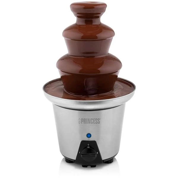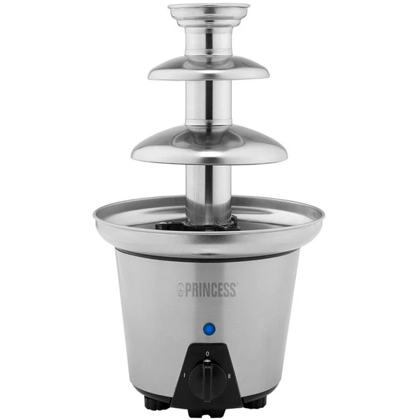 Mit dem Princess Schokoladenbrunnen XL 292998 lassen sich Freunde und Familienmitglieder mit einem köstlichen Dessert verwöhnen. Der Schokoladenbrunnen ist auch bei der Geburtstagsfeier Ihres Kindes ein toller Blickfang. Der Princess Schokoladenbrunnen hat drei Ebenen, eine Höhe von 32,5 cm und eine Kapazität von 0,7 l. So lassen sich Freunde und Familie mit frischem Obst, Cookies oder Marshmellows mit köstlichem Schokoladenüberzug verwöhnen. Der Princess Schokoladenbrunnen XL darf auf keiner Party fehlen. Dank der Warmhaltefunktion klumpt die Schokolade nicht, sondern bleibt schön flüssig. Die Pumpe und die Temperatur können separat eingestellt werden. So kann man selbst bestimmen, wie schnell die Schokolade umgewälzt wird und wie heiß sie sein soll. Aufgrund der 90 Watt Leistung des Schokoladenbrunnens ist der Brunnen Schnell einsatzbereit. Für Sicherheit bei der Verwendung sorgen die rutschfesten Füße. Dank des robusten Materials ist auch die Reinigung einfach, die drei Ebenen können getrennt im Geschirrspüler gereinigt werden.Art.-Nr.: 1704357