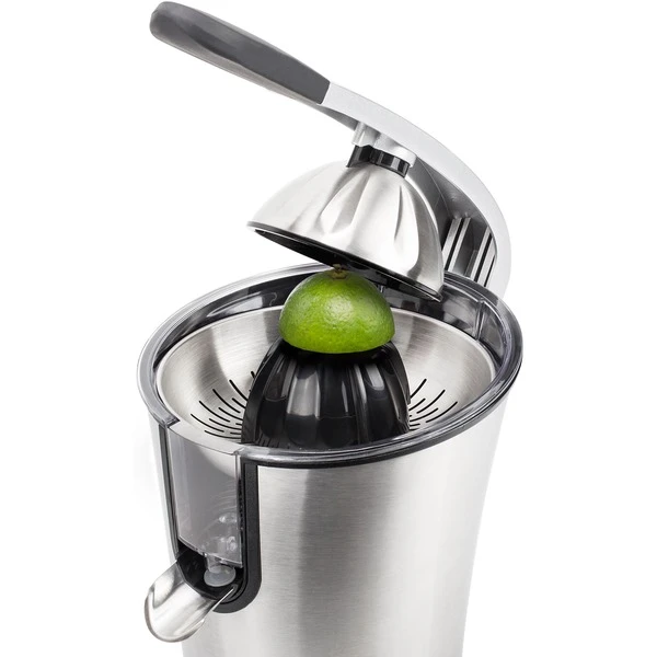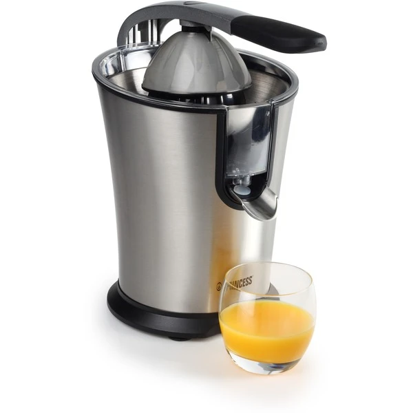 Mit der Zitruspresse Master kann man Zuhause wie die Profis entsaften. Die halbprofessionelle Zitruspresse verfügt über einen Hebelarm aus Aluminiumguss, mit dem ohne viel Kraftaufwand selbst das letzte Safttröpfchen mühelos ausgepresst werden kann. Die innovative Kegelform eignet sich für alle Zitrusfrüchte, von Grapefruit bis Limone. Durch die hochgezogenen Kanten des speziellen Kegelgehäuses eignet sich der Princess Master Juicer zum Entsaften großer und kleiner Zitrusfrüchte in sehr kurzer Zeit. Durch die Kanten bleibt die Zitrusfrucht fest im Gerät kann beim Auspressen nicht verrutschen. Über das Fruchtfleischsieb fließt der Saft direkt ins Glas. So erhält man köstlichen, frischen und vitaminhaltigen Saft im Handumdrehen für die gesamte Familie. Der leistungsstarke 160 Watt Motor sorgt dafür, dass der gesamte Saft aus den Zitrusfrüchten gepresst wird, dabei ist er aber sehr leise. Alle abnehmbaren Teile der Princess Master Zitruspresse sind spülmaschinenfest. Die Saftpresse ist außerdem mit einem Tropfschutz ausgestattet.Art.-Nr.: 1466862