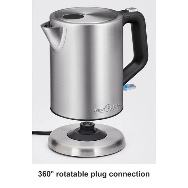 Der PC-WKS 1106 ist ein schlichter Wasserkocher im eleganten Edelstahlgehäuse und verdecktem Edelstahlheizelement. Zum Aufheizen wird der Wasserkocher einfach auf die 360° Basisstation gestellt und angeschaltet. Der Heizvorgang kann automatisch oder manuell beendet werden, zusätzlich signalisiert der blaue LED Ein-/Ausschalter über den laufenden Vorgang. Der Deckel des PC-WKS 1106 ist verriegelt und kann über den Knopf ganz einfach mit einer Hand bedient und geöffnet werden.Art.-Nr.: 1459701