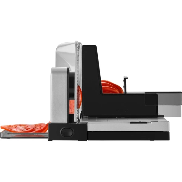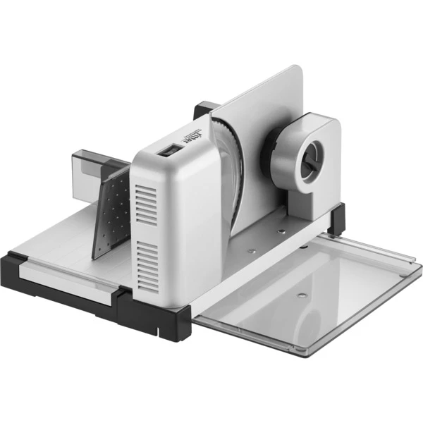 | Ausstattung | Dauerbetrieb, Momentbetrieb, Schnittstärke stufenlos einstellbar, Schneidgut-Auffangschale, abnehmbarer Schlitten | ||