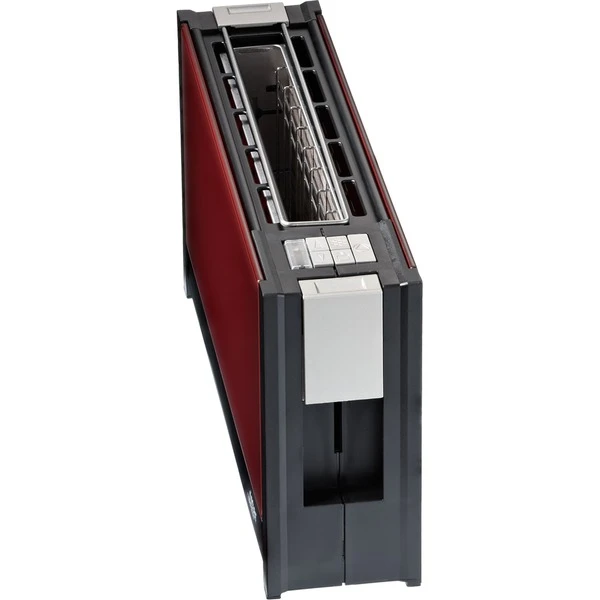 Mit nur knappen 9 cm Breite ist der elegante Langschlitztoaster volcano 5 unvergleichbar schmal und ein echter Hingucker in jeder Küche. Die edlen Glasfronten in rot verleihen dem Toaster zudem ein exklusives Äußeres. Hochwertige Materialien und eine perfekte Verarbeitung sorgen beim volcano 5 für eine hohe Lebensdauer. Mit volcano 5 können zwei Toastscheiben gleichzeitig geröstet werden, die durch eine Röstgutzentrierung gleichmäßig gebräunt werden. Ganz nach Geschmack kann der Röstgrad des Brotes in neun Bräunungsstufen eingestellt werden. Der eingestellte Röstgrad wird digital über LED’s angezeigt und bleibt durch eine Memoryfunktion beim nächsten Röstvorgang erhalten und muss somit nicht immer aufs Neue eingestellt werden – dies gilt auch für den Fall, dass der Toaster einmal vom Netz getrennt wird. Während des Röstvorgangs erlöschen die LED`s schrittweise mit Fortschreiten des Toastvorgangs, sodass die verbleibende Röstzeit leicht einschätzbar ist.