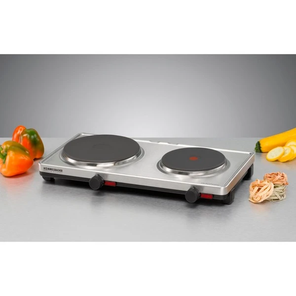 Die hochwertige Doppelkochplatte AK 3099/E mit einzigartigem 2-Schalen-Gehäuse und mit attraktiver Edelstahl-Oberfläche macht überall eine gute Figur – ob als Zusatzgerät in der Küche oder als vollwertige Kochstelle in Büro und Ferienwohnung. Das patentierte Thermostatsystem sorgt für höchste Temperaturgenauigkeit. Die Ankochautomatik, große, gut sichtbare Kontrolllampen und ein Überhitzungsschutz bieten hohen Bedienkomfort und Sicherheit. Die langlebigen Gussheizplatten sind für Kochgefäße aller Art bestens geeignet; die Ausführung als Blitzplatte (roter Punkt) sorgt für eine sehr kurze Aufheizzeit. Art.-Nr.: 1518357