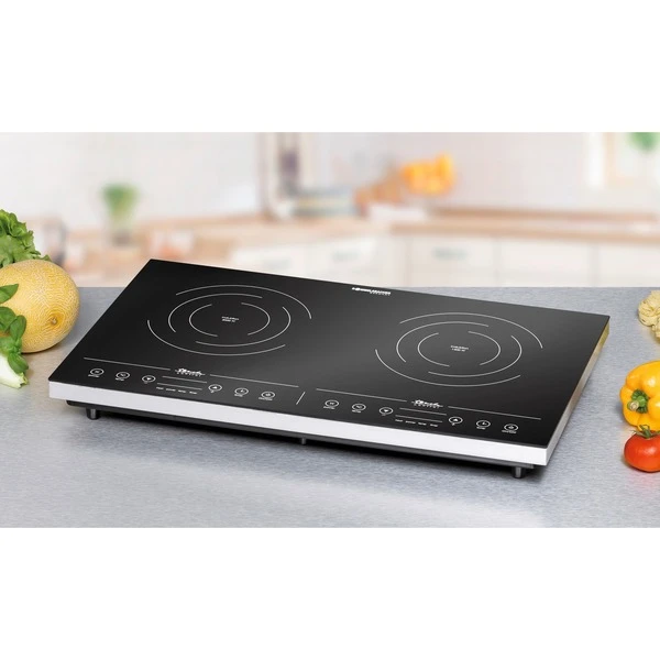 Induktion ist die moderne Art zu kochen. Ein elektromagnetisches Feld erhitzt nicht erst das Kochfeld, sondern gleich den Topfboden. Die Temperatur steht so schnell zur Verfügung wie bei einem Gasherd, nur erheblich sicherer. Durch den hohen Wirkungsgrad spart man Energie, Zeit und Geld. Die Doppelkochplatte CT 3410/IN eignet sich perfekt als Ergänzung zum bestehenden Herd oder als mobile Kochstelle für Appartement, Ferienhaus oder Büro. Die Induktionskochplatte bietet eine Leistungswahl in 10 Stufen und eine Temperaturvorwahl von 60 °C bis 240 °C. Für hohen Benutzerkomfort stehen die Regelung über Touch Control, die LED Anzeige und die 180 Minuten Zeitschaltuhr. Die rahmenlose Glaskeramik-Kochfläche ist ohne Zwischenstege konstruiert und somit sehr reinigungsfreundlich. Eine automatische Abschaltung mit Signalton und die Restwärmeanzeige sorgen zudem für Sicherheit beim Betrieb.Art.-Nr.: 1518870